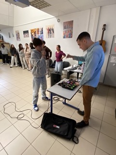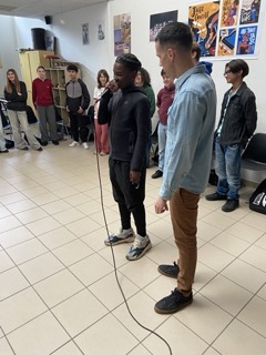 Il a, en suite, proposé aux élèves un atelier d’initiation au beatbox, durant lequel chacun.e a pu découvrir de nouvelles voies d’expression par le biais de mécanismes vocaux inhabituels.