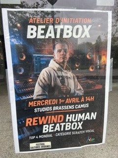 Dans ce cadre, le beatboxer Rewind (n°4 mondial en scratch vocal) est intervenu en classe.